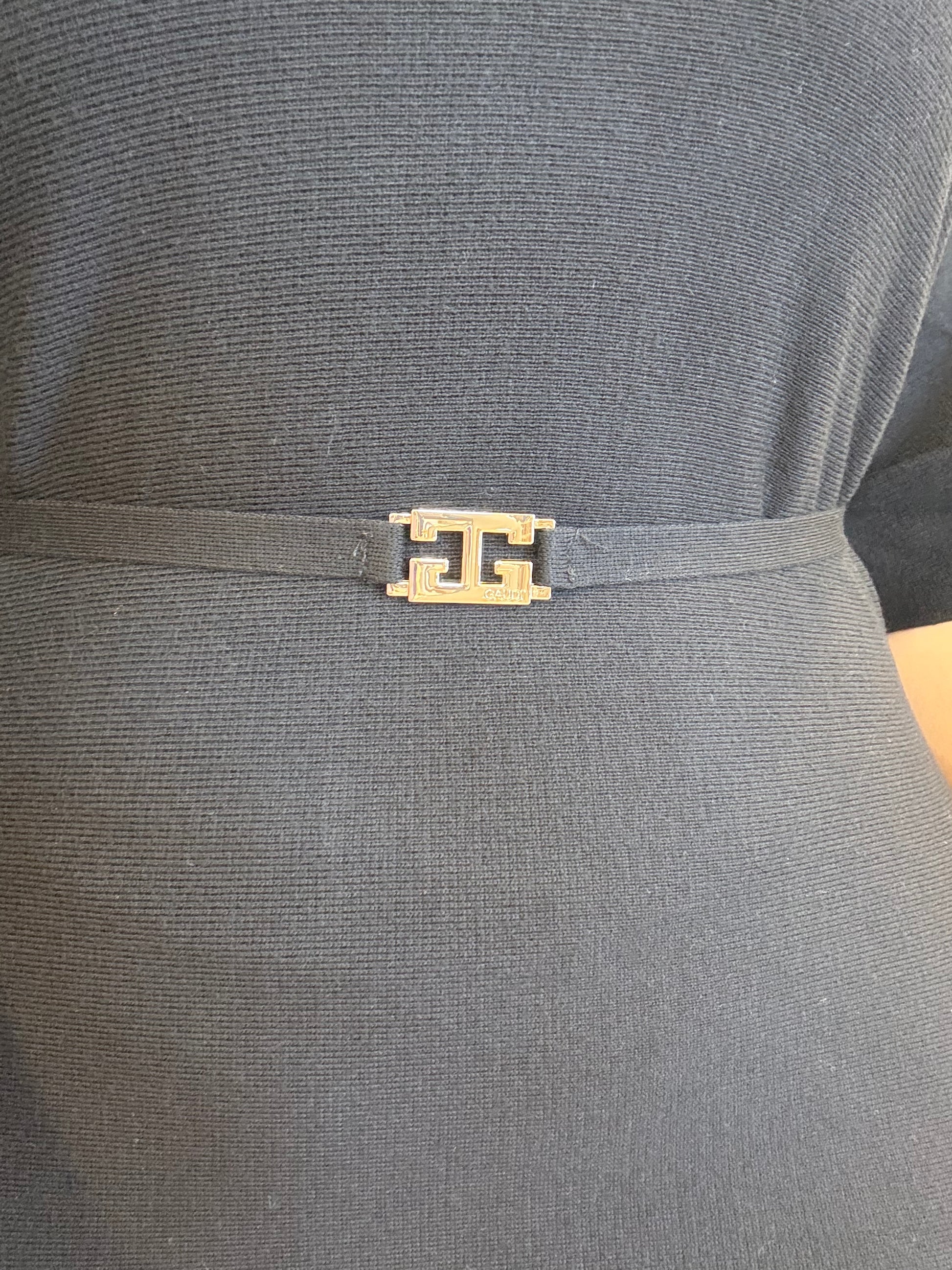 Scegli l'abito corto in filato di misto lana con motivo a scialle e cintura con fibbia logata. Sofisticato e minimal per un'eleganza senza tempo.