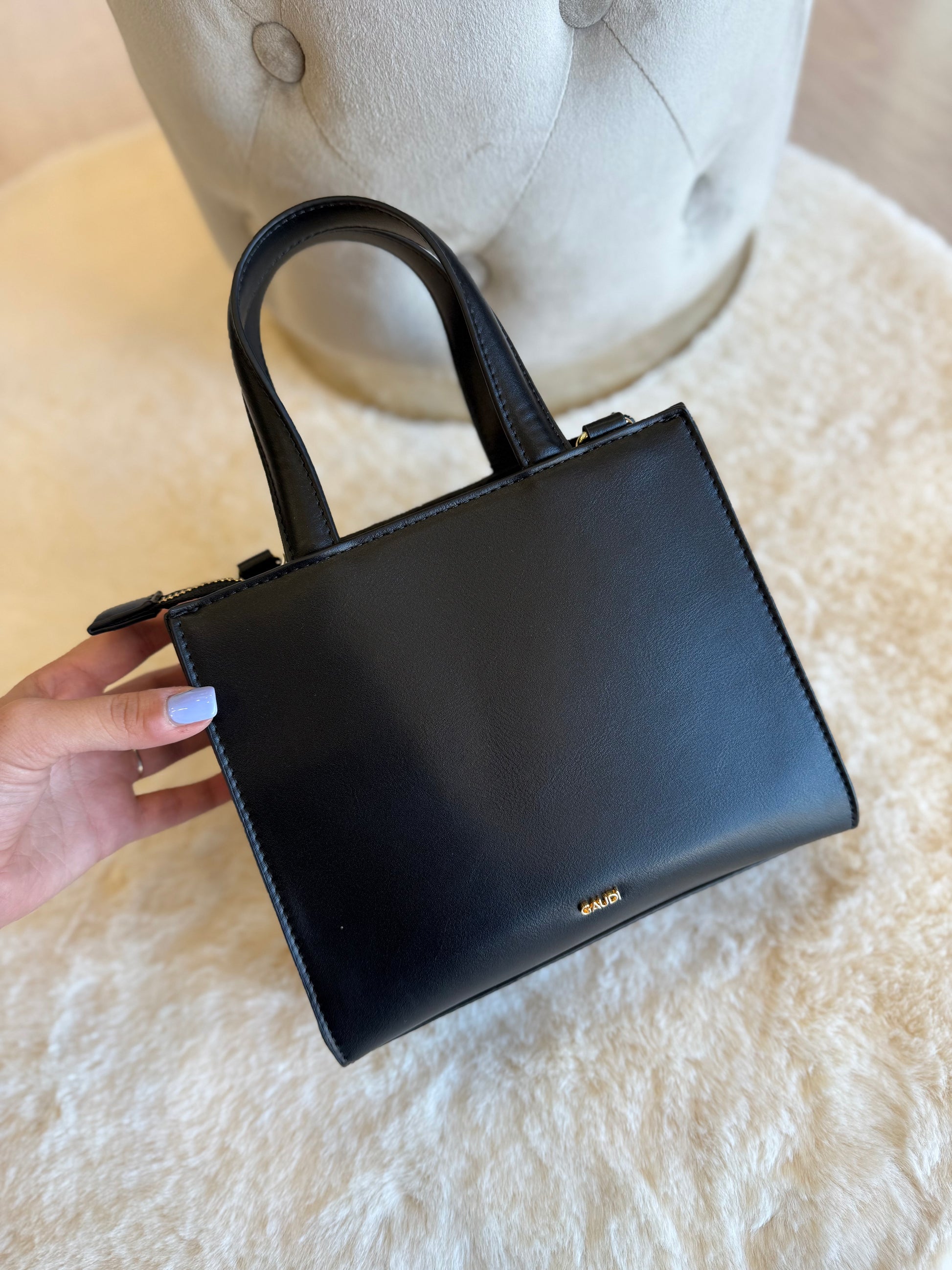 Scegli la borsa top handle in velluto con lettering GJ all over, logo ricamato e tracolla rimovibile. Per un look casual e trendy. L 22 x H 18 x W 9