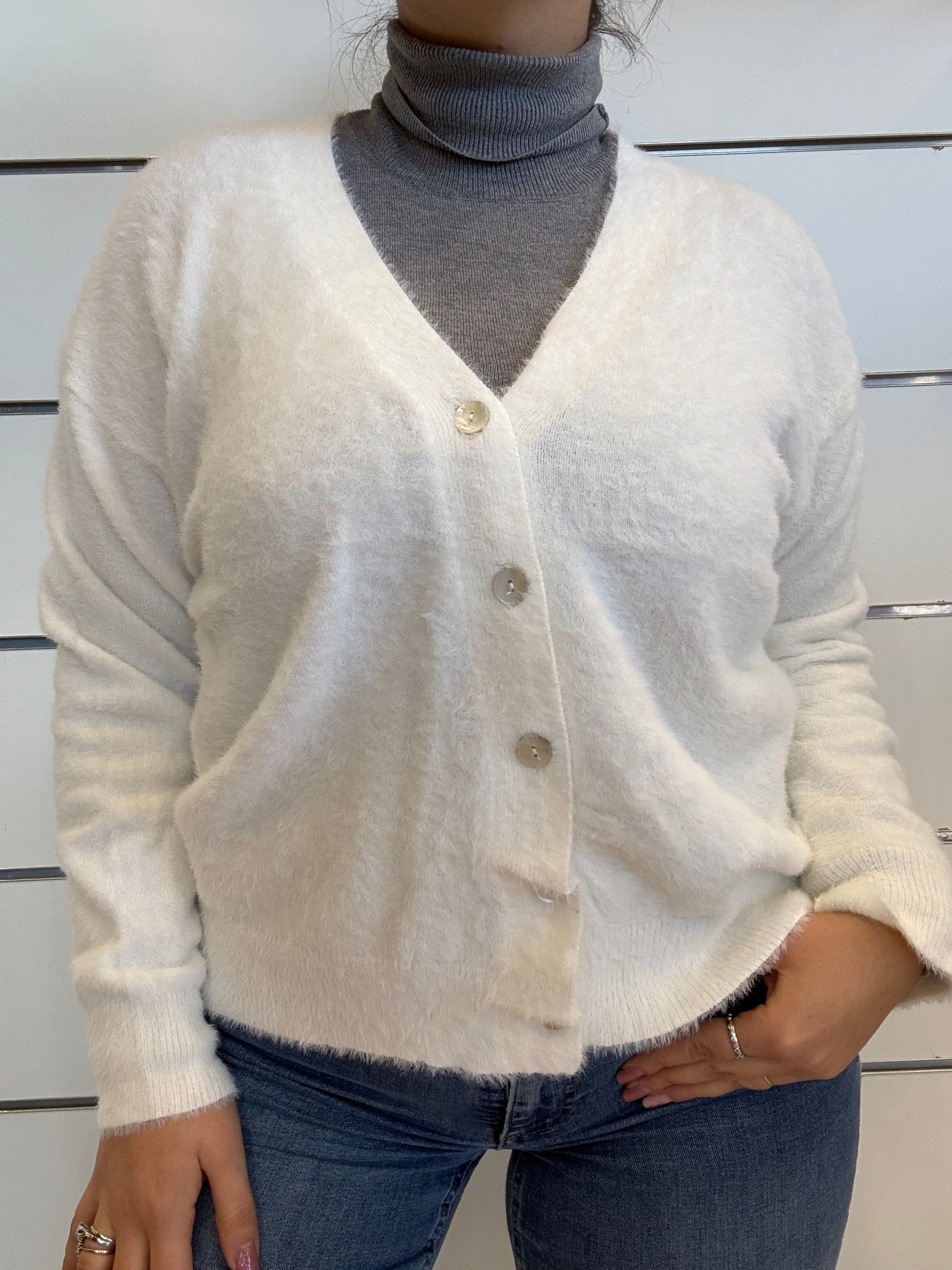 Cardigan morbido con scollo a "V" e bottoncini