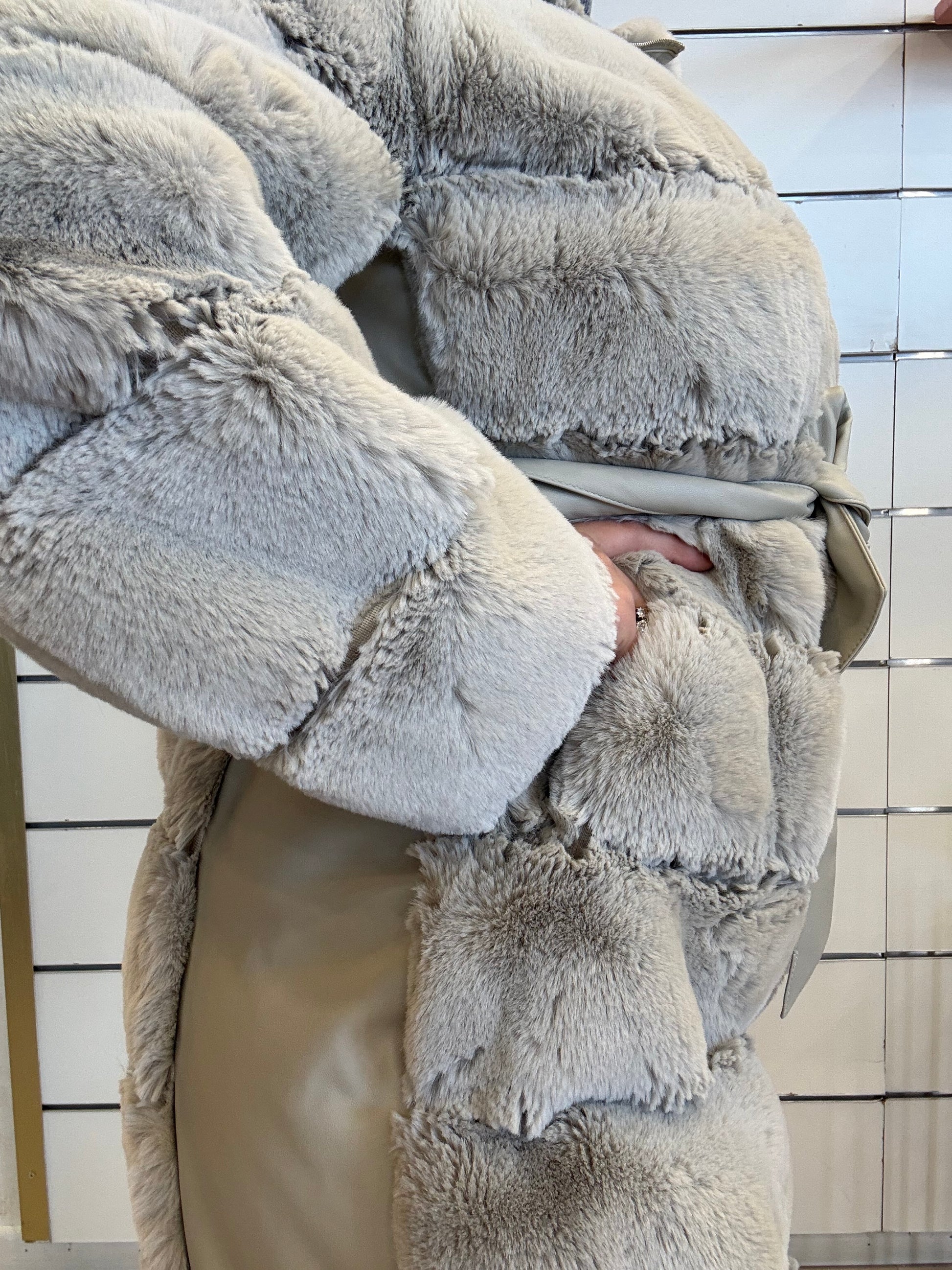 Ecopelliccia con dettagli in ecopelle