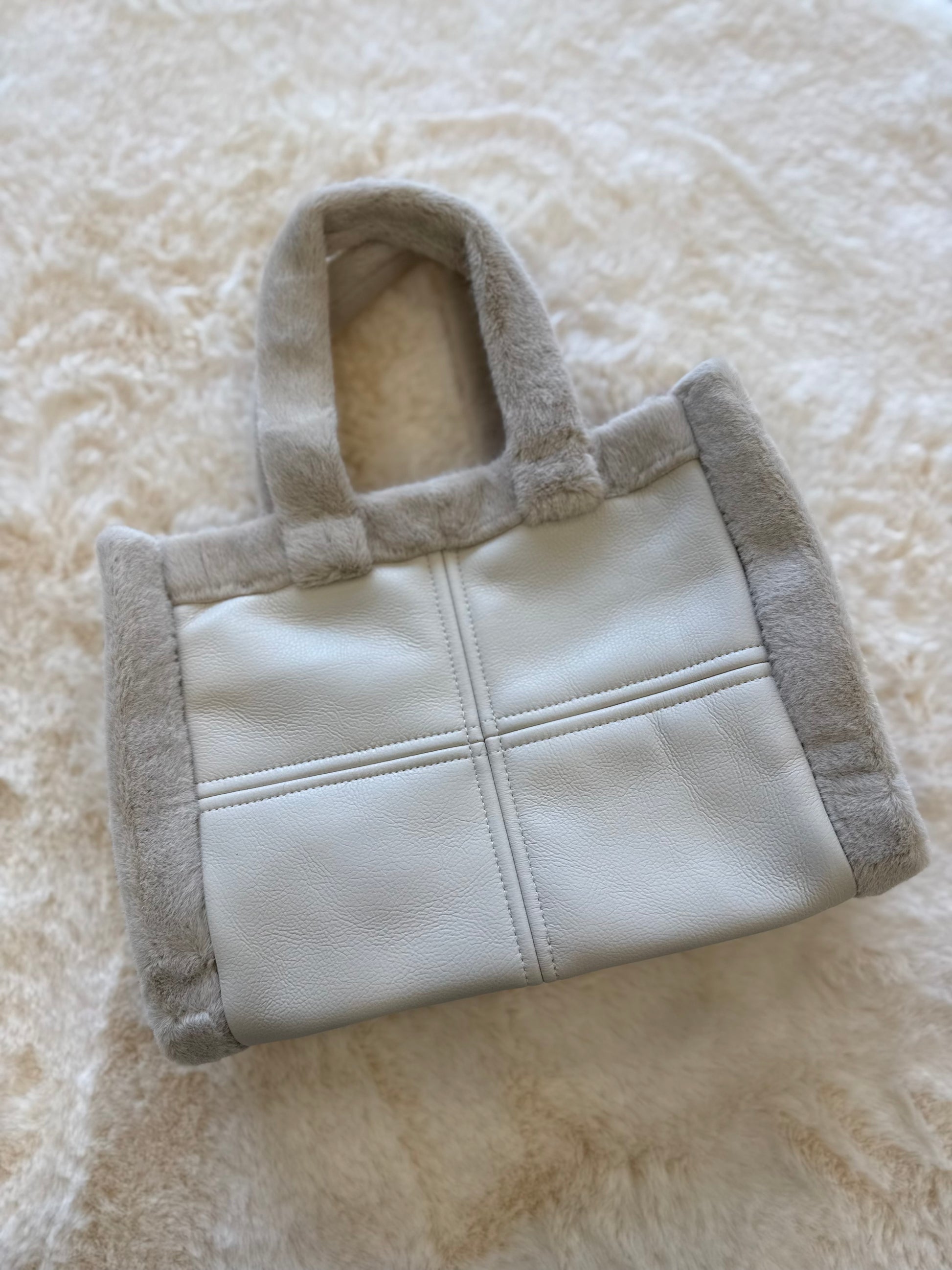 Piccola shopper in pelle vegana con dettagli in pelliccia sintetica. Questa elegante shopper presenta due manici corti, dettagli impunturati, una chiusura a scatto sulla parte superiore, una tasca interna con chiusura a cerniera e una tracolla staccabile. L'interno della borsa è realizzato in pelliccia sintetica. È la borsa perfetta per completare il tuo look e contenere tutti i tuoi oggetti essenziali.