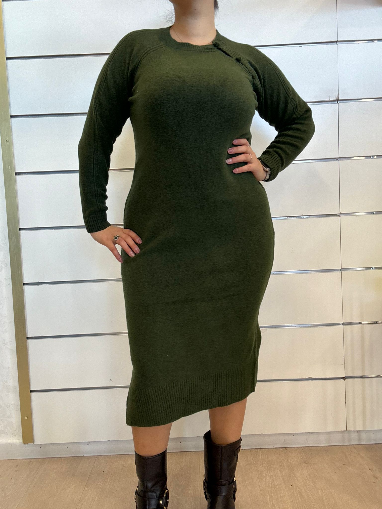 Maxi abito lungo caldo e avvolgente, con lunghezza al polpaccio e spacchetto laterale che dona movimento alla silhouette. Il dettaglio sulla spalla, con apertura e piccoli nodi decorativi, aggiunge un tocco moderno e femminile. Realizzato in una morbida maglia (54% poliestere, 23% acrilico, 13% nylon, 6% lana, 4% elastan), è perfetto per look eleganti ma confortevoli nelle giornate più fredde.