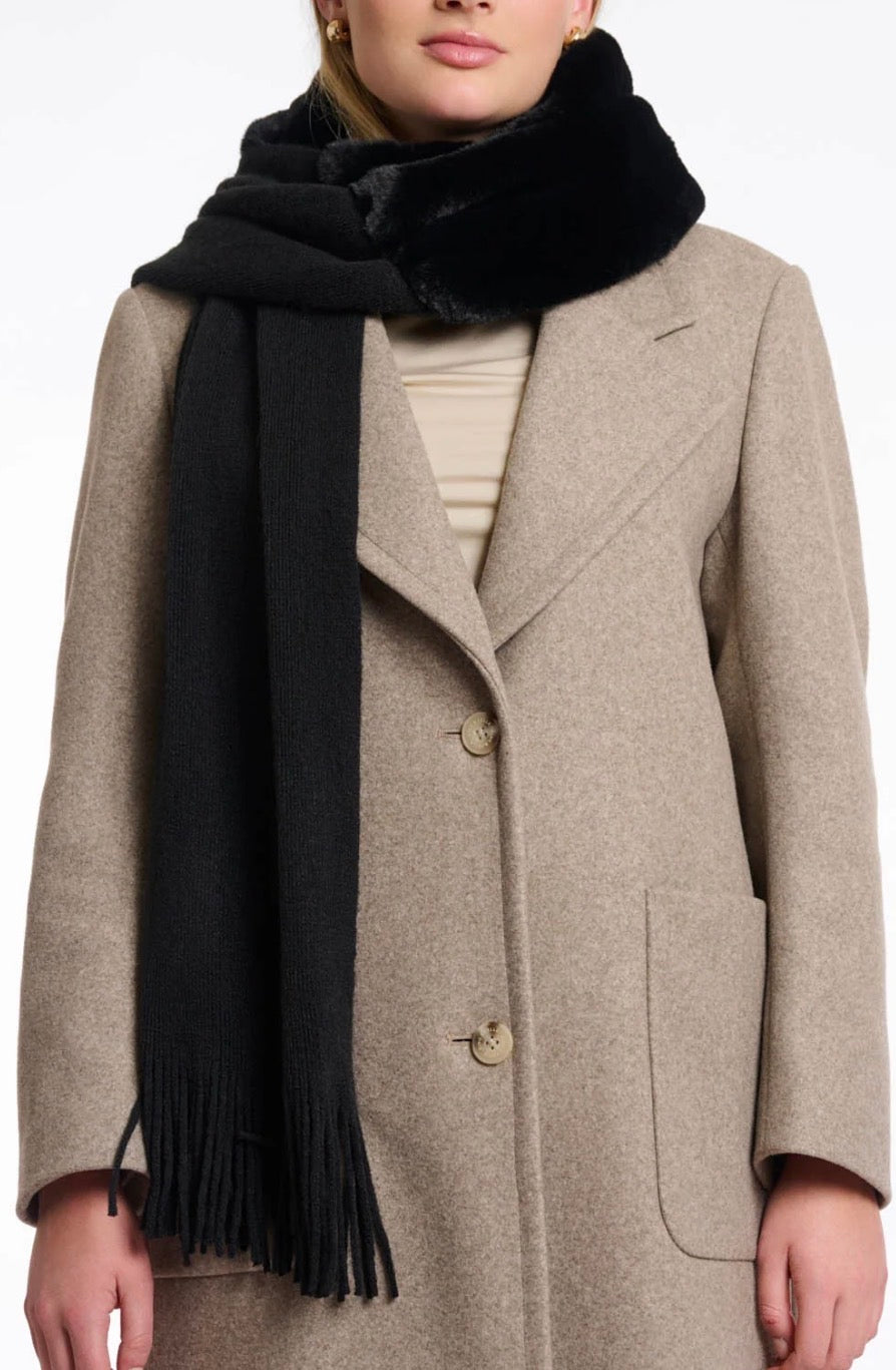 Sciarpa intrecciata tono su tono. Questa sciarpa presenta dettagli in pelliccia sintetica, ampie frange alle estremità e una sensazione di morbidezza estrema.