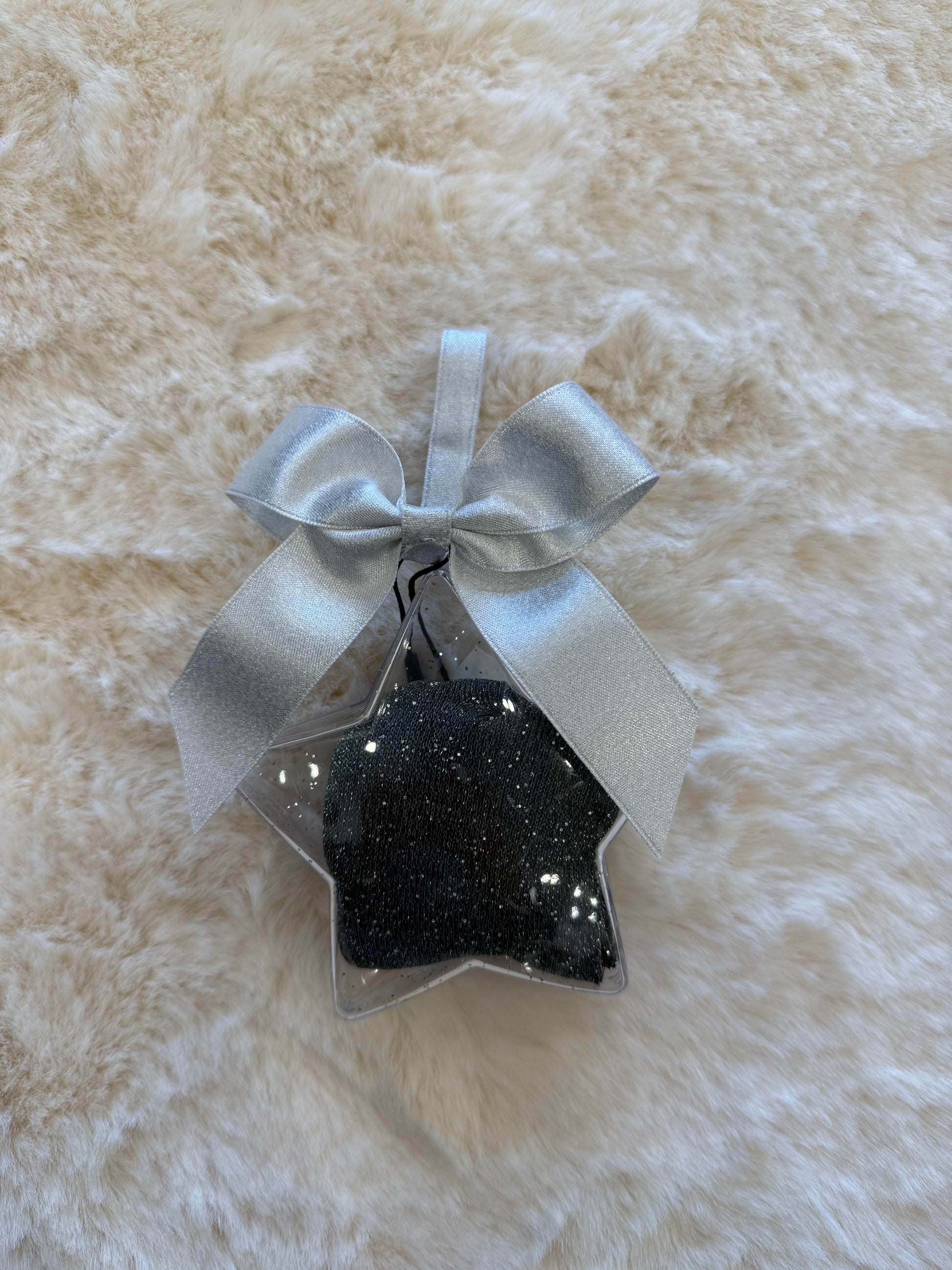 Palline a forma di stella in materiale trasparente, con all’interno un simpatico calzino verde con lurex. Un dettaglio originale e divertente per rendere il tuo albero di Natale ancora più speciale e creativo.